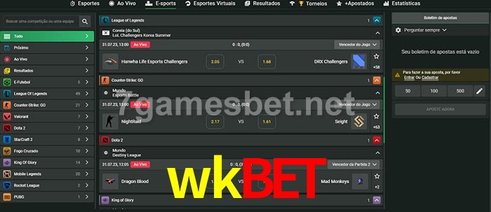 O wkbet oferece uma grande seleção de opções de apostas em e-sports com probabilidades competitivas